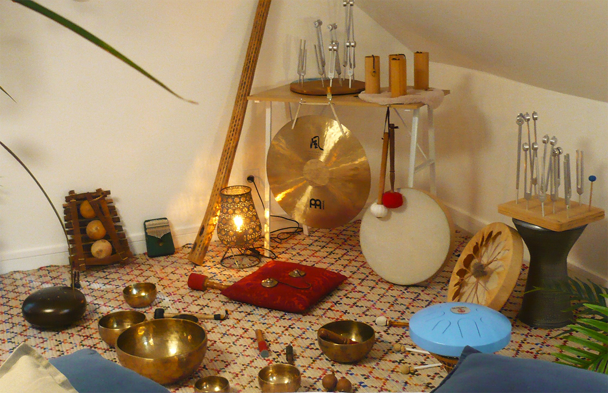 Les bains sonores, où les participants se couchent confortablement et écoutent les vibrations des bols chantants, des gongs, des tambours et d’autres instruments de musique.